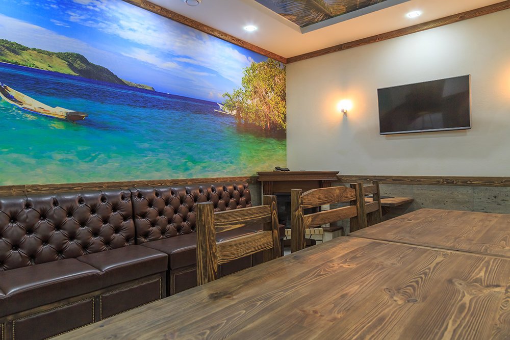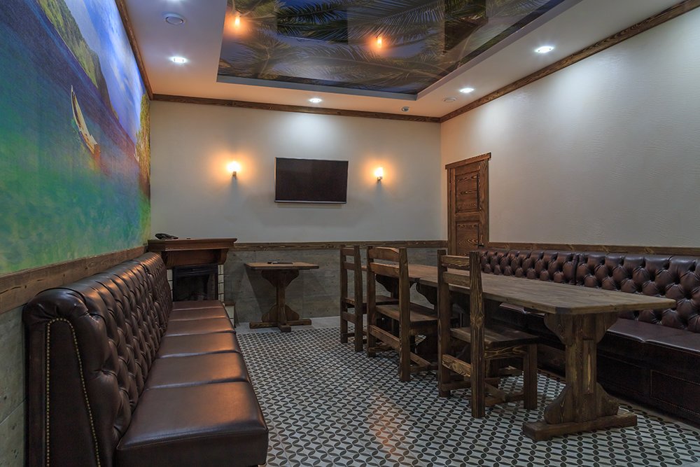 Не хочется в джакузи? Не проблема! Вместо этого можно передохнуть в нашей комнате отдыха. Мы постарались создать здесь комфортный, стильный интерьер из максимально натуральных, экологичных материалов, выбрать мебель, которая будет одновременно удобной и эстетичной. Надеемся, что вы его оцените! Для создания настроения нас есть камин. Также у нас работает бар, где вы можете заказать блюда русской и японской кухонь. Только не забывайте, что плотная трапеза непосредственно перед посещением парной - это не самая хорошая идея, согласно мнению терапевтов. А вот после парной можно трапезничать смело!